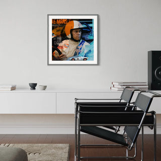 Bild von Paul Newman im Rennanzug als Kunstdruck an der Wand