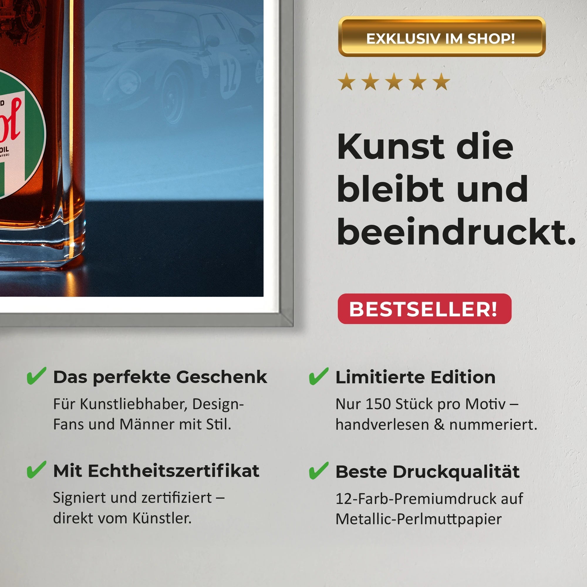 Warum mit weniger zufrieden sein? Während herkömmliche Offsetdrucke mit nur 70 DPI oft grobe Raster und unscharfe Details zeigen, bieten unsere Alkoholika Artefakte-Drucke mit beeindruckenden 2580 DPI eine gestochen scharfe, lebendige und farbintensive Qualität. Dank modernster 8-Farb-Drucktechnologie und edlem Hahnemühle Büttenpapier wirken unsere Prints fast wie Originalgemälde.